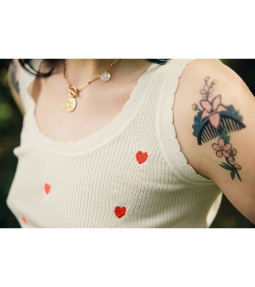 Ajouter au panier T Shirt Morisson Prix 46,90 CHF T shirt oversize blanc Taille unique Décoré d'une grande fleur type Margueritte couleur crème et noire en crochet