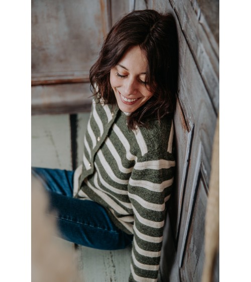 Ajouter au panier Pull Gilet Shelby Prix 52,00 CHF Pull Gilet en maille Orné du bouton dorés sur le devant Motif rayures crèmes et kaki* Taille Unique convient du 34 au 40