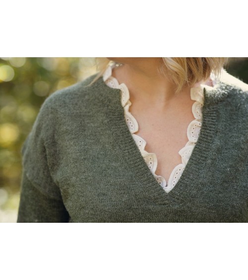 Top manches longes  Matière ajourée fluide jeu de transparence 90% polyester 10% élasthanne Coralie porte la taille S