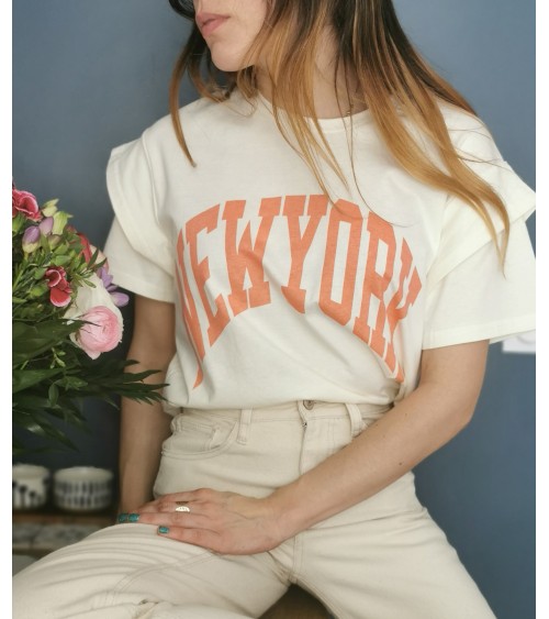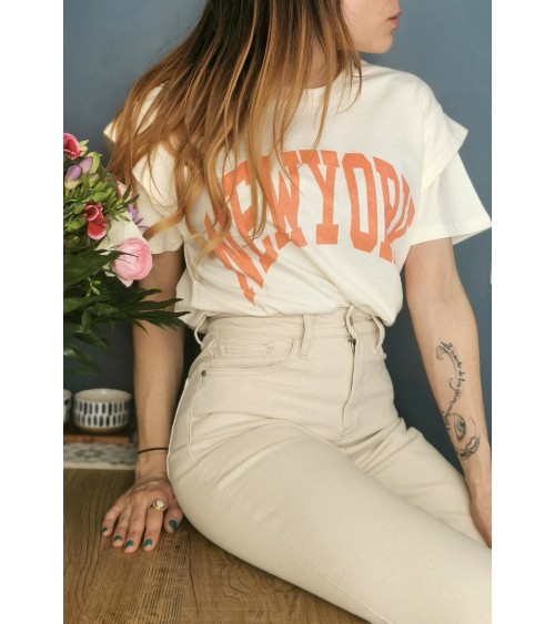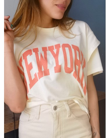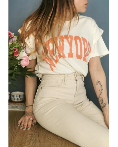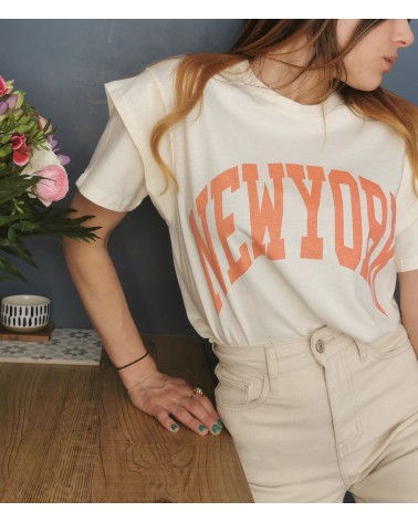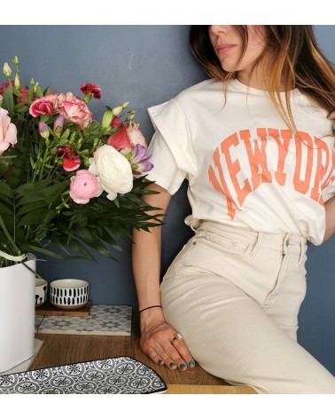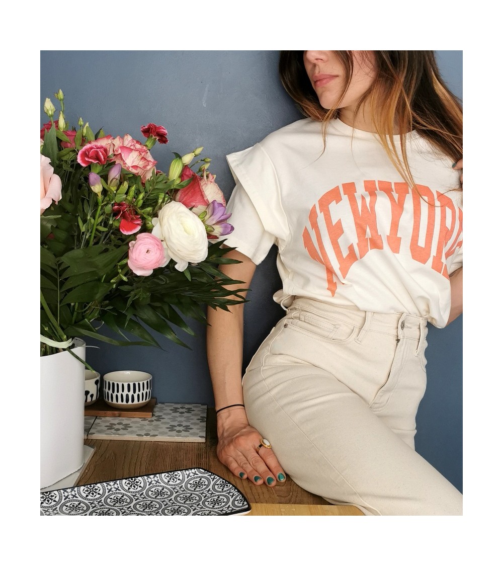 Inscription NEWYORK de couleur corail