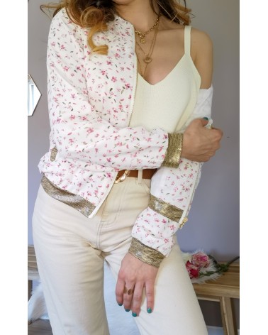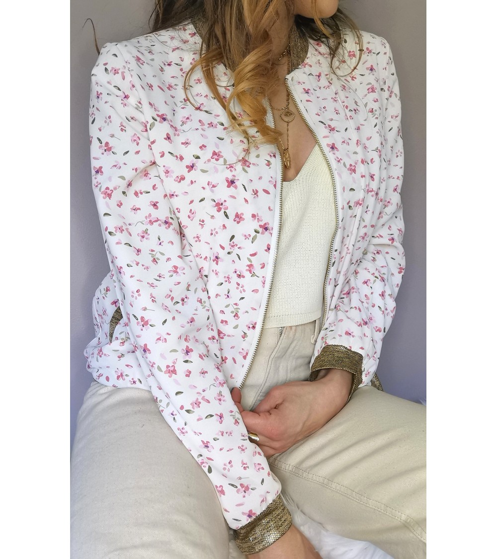 Empiècements de tissus dorés : poches , col , bas du bomber