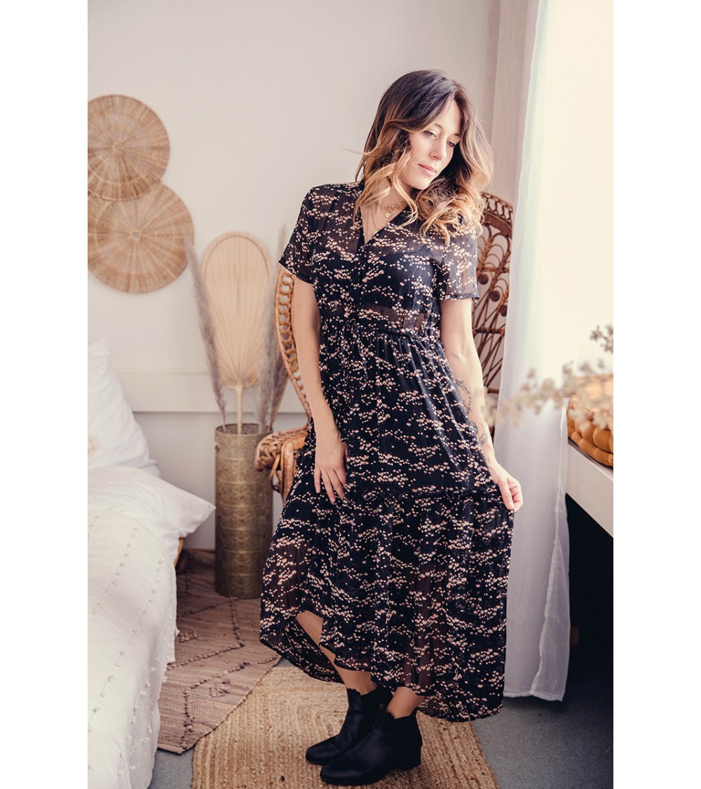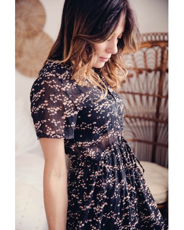 Haut de la robe style chemisier entièrement boutonné et semi transparent