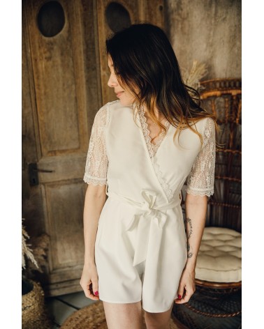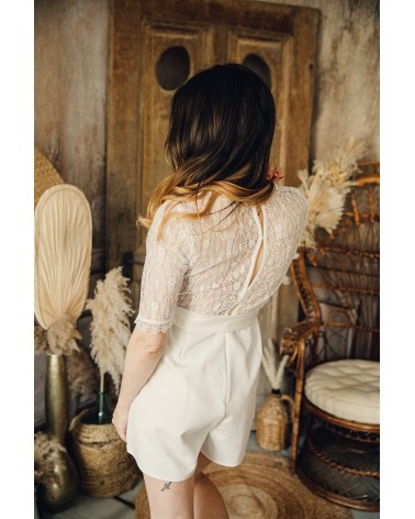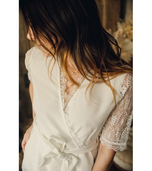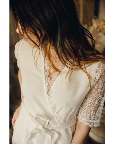 Jeu de transparence avec un dos effet nu tout en broderie et dentelle