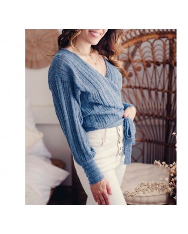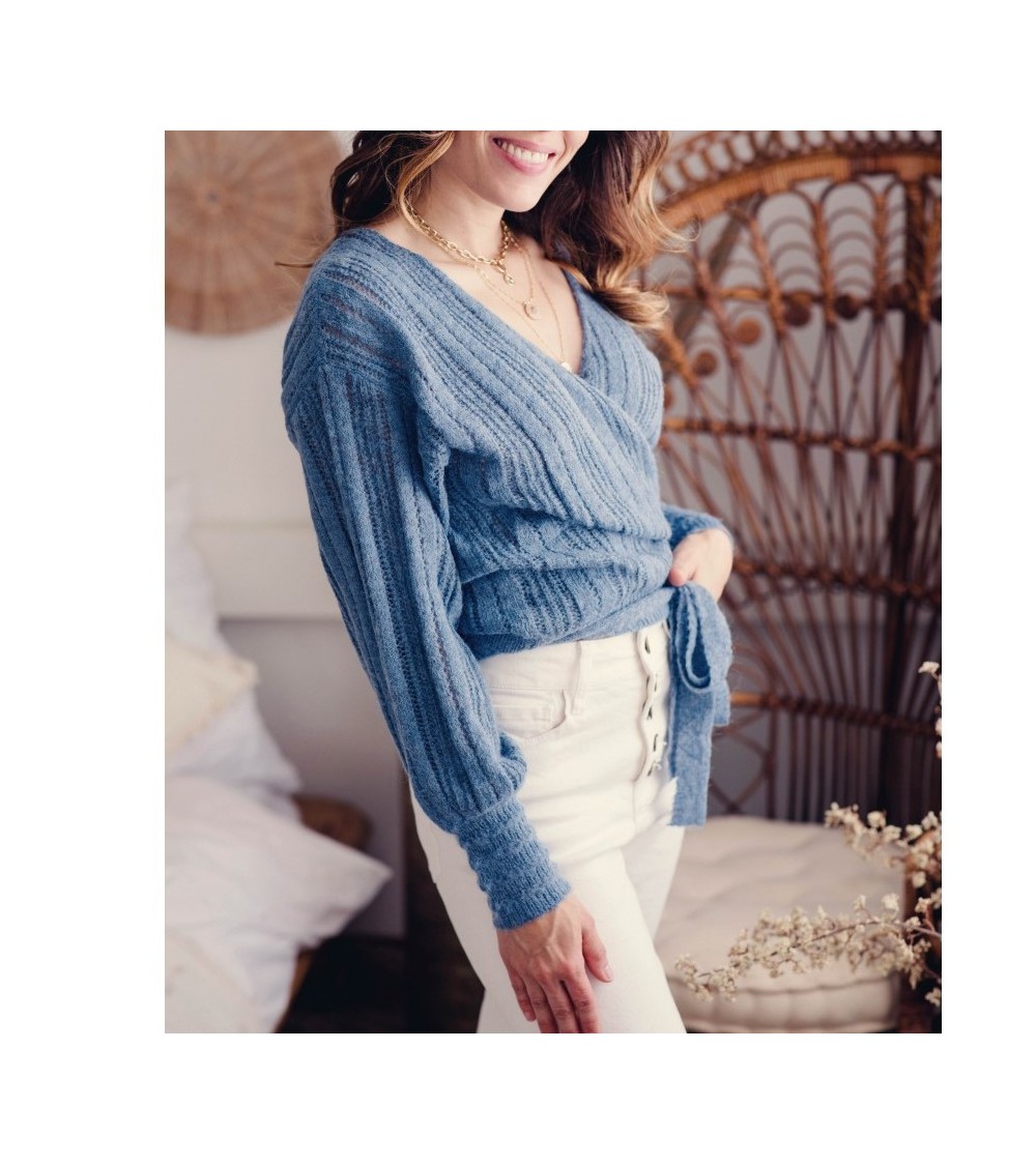 Ajouré de fines lignes verticales en tricot qui laissent entrevoir la peau