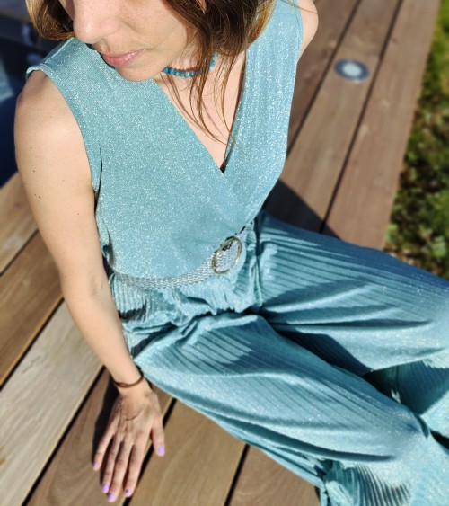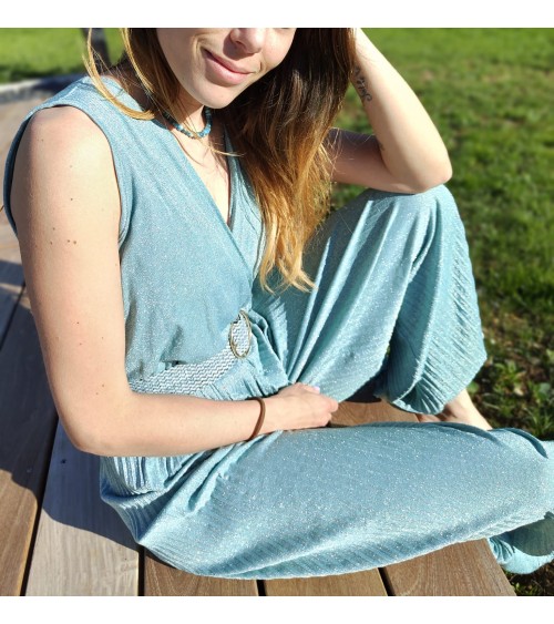 Notre fameuse combi Paoma en version estivale avec son tissus lurex irisé