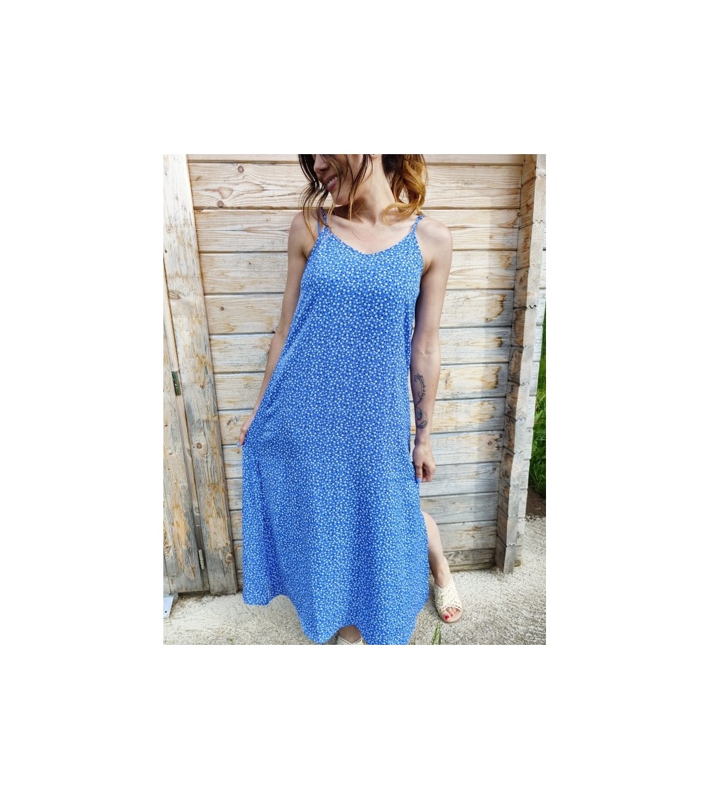Tissus bleu roi aux motifs fleuris blanc/noir