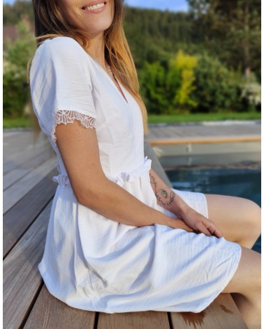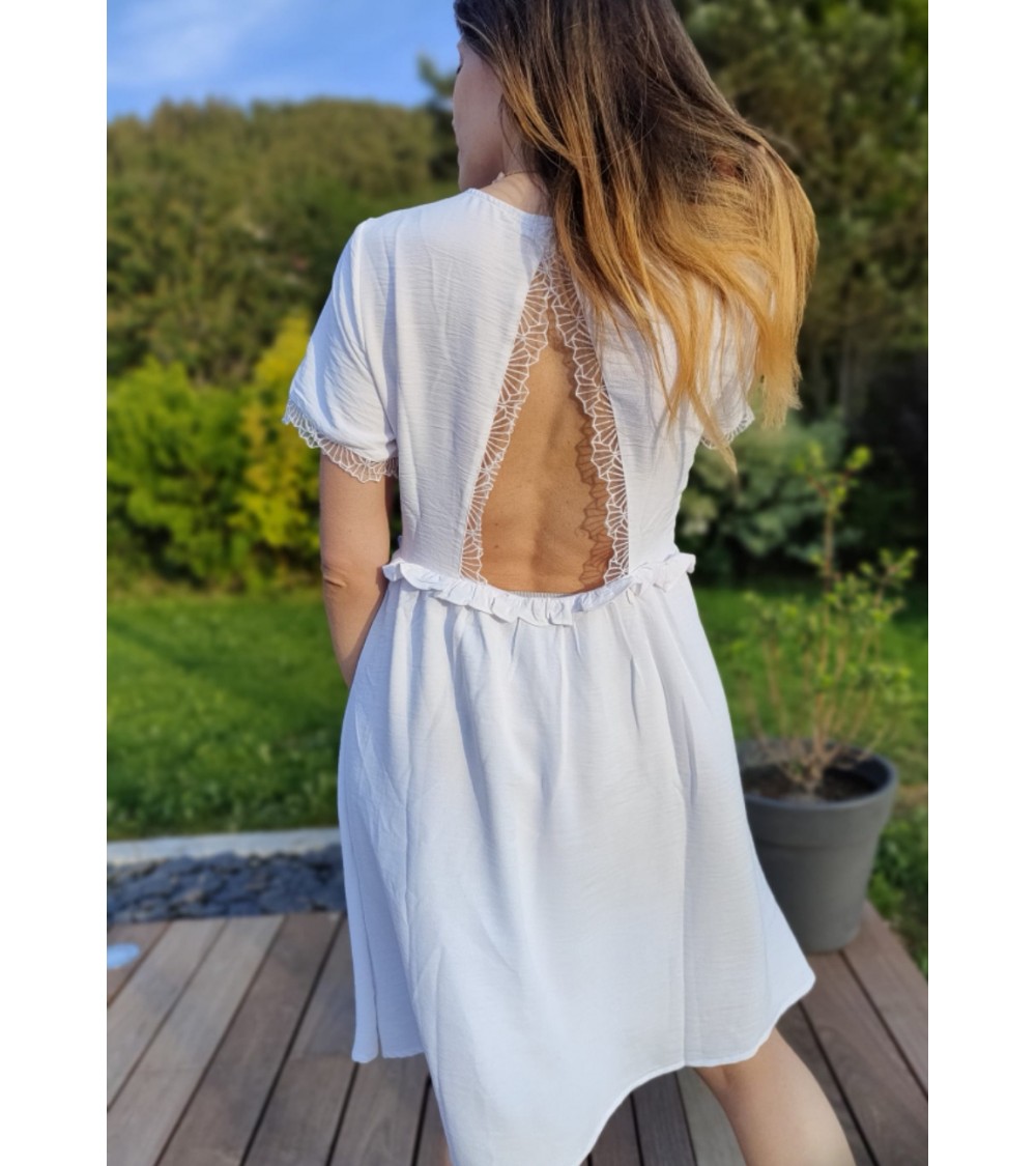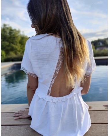 Empiècements en dentelle au niveau des manches et également dans le dos