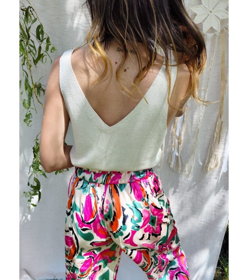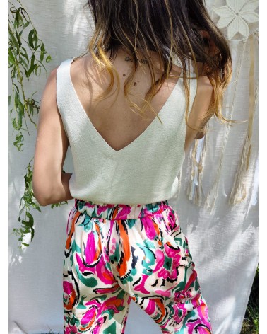 Aperçu rapide Ajouter au panier Blouse Jasmine 49,90 CHF Magnifique top sans manches au style unique Col V orné de volants Volants sur le épaule et sur le tout du top Tissus...