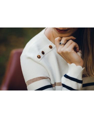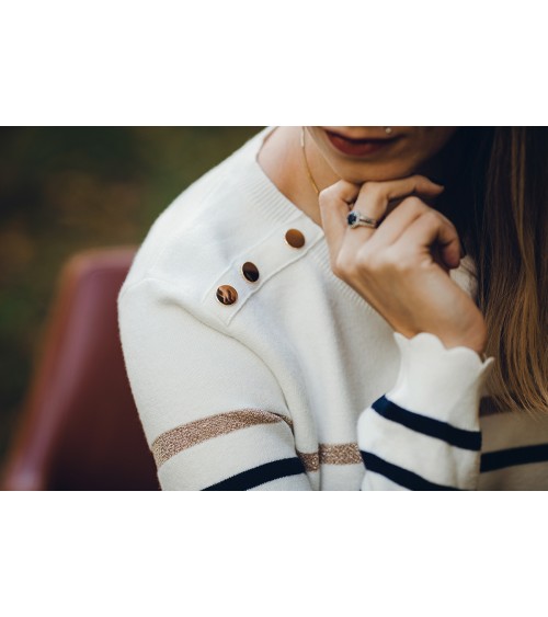 Aperçu rapide Ajouter au panier Sweat shirt Néo 58,90 CHF Sweat shirt effet broderie 2paules ajourées Orné de boutons dorés sur le devant 100% coton Taille unique convient...