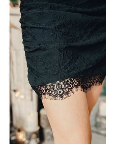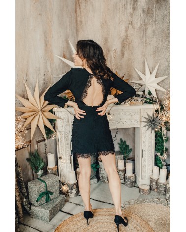 Ouverture dans le dos en dentelle et fermeture en haut du dos avec un petit bouton