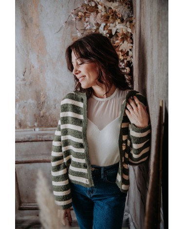 Motif rayures crèmes et kaki*