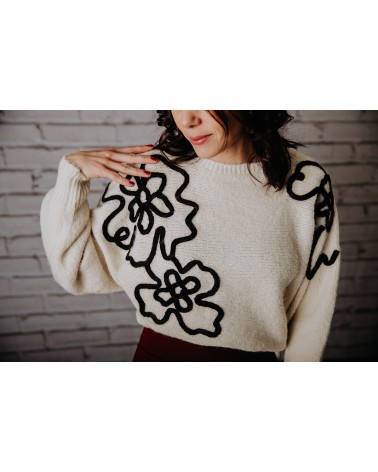 Crème avec motif brodé floral noir très tendance