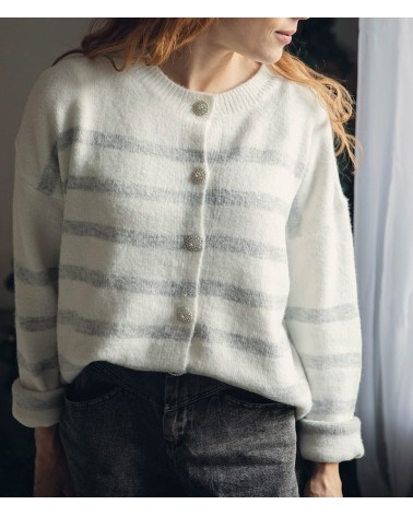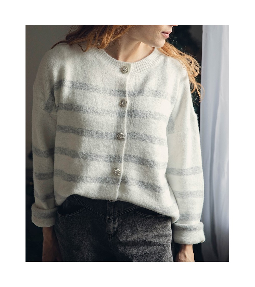 Coloris blanc rayé gris souris