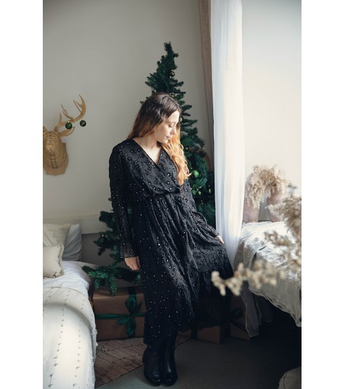 Une robe longue et chaude entièrement doublée, idéale pour une soirée d'hiver ou même à porter au quotidien