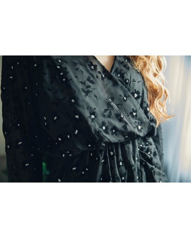 Couleur noir chic et décorée d'empiècements en velours subtilement ornés de paillettes argentées